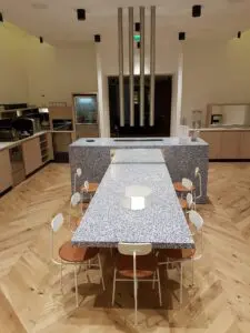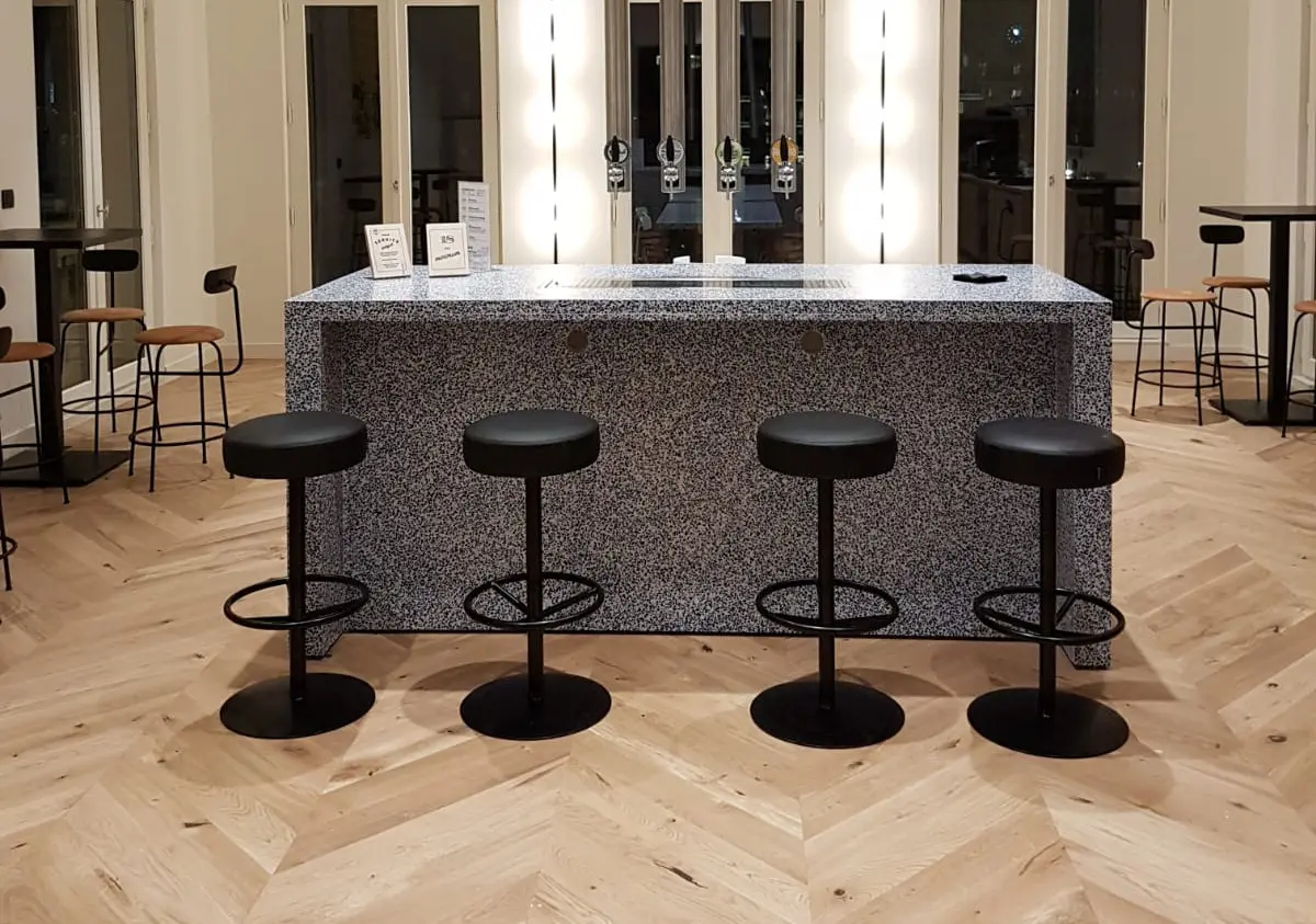 In addition, 30m² of flooring in our ‘Bond’ terrazzo, TE007 presented the perfect option for a quirky conference room.