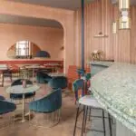 Diespeker terrazzo became a key element in the design of the venue; the curves of the terrazzo bar echo the creative concept by design studio Sella Concept to use the circular shape of the sun as inspiration for the restaurant’s identity along with tones of the earth.