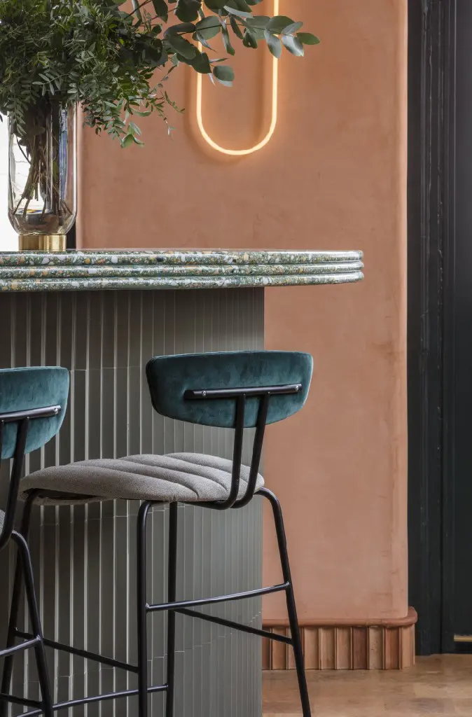 Diespeker terrazzo became a key element in the design of the venue; the curves of the terrazzo bar echo the creative concept by design studio Sella Concept to use the circular shape of the sun as inspiration for the restaurant’s identity along with tones of the earth.