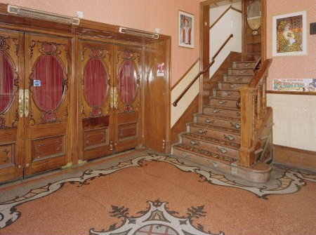 We were recently contacted by Murray Peterson, who brought to our attention archive photos of the Pavilion Theatre in The Canmore National Record of the Historic Environment. Amongst the archive were several photos of mosaic flooring and stairs in the lobby of the theatre.