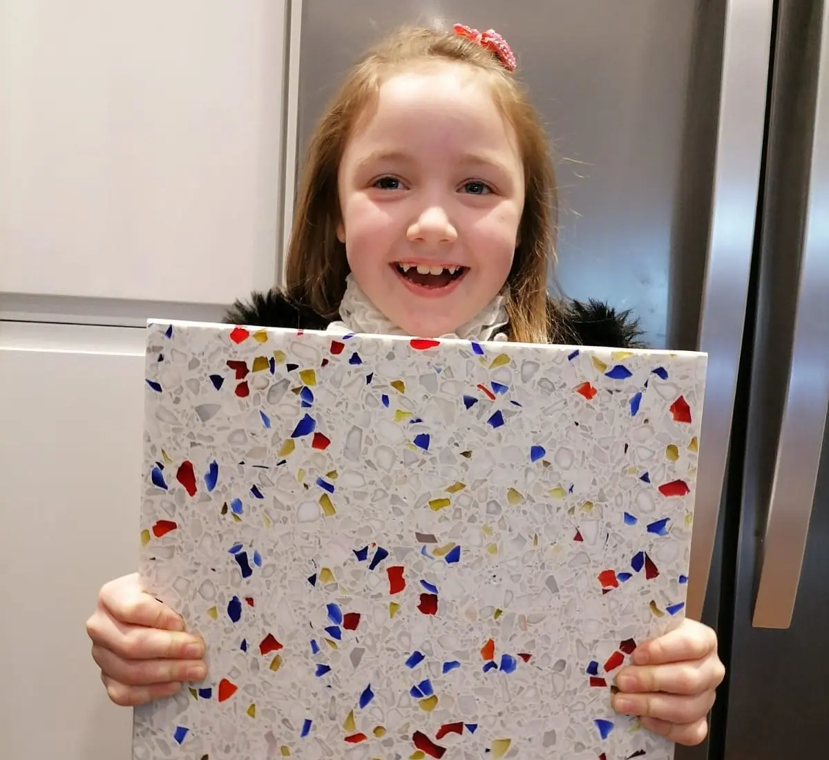 As the name Florence has connections with the homeland of terrazzo, we weren’t at all surprised to discover Florence’s innate skill. And we are delighted to hear that Florence says she wants to work at Diespeker. As well as the terrazzo, Florence was given a Diespeker beanie so she is already part of the team. We’ll be holding a position open for her in a decade or so’s time!