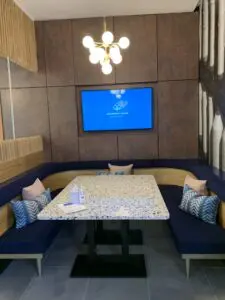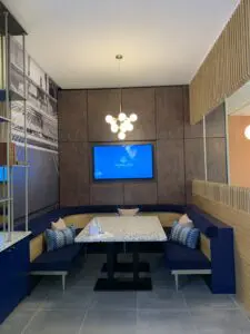 Diespeker supplied and fabricated resin terrazzo from our standard range for the concierge desk, workspace tables and tea bars. The terrazzo TE007 was specified to match visuals received from the architects.