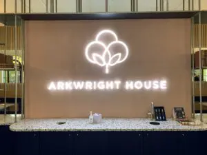 Arkwright House is a Grade-II listed building designed by architects Harry S. Fairhurst and completed in 1937. It was originally home to the English Sewing Cotton Company and became the North West Command Post of Government during World War Two, when an office and sleeping quarters were assigned for Winston Churchill’s use during his visits.