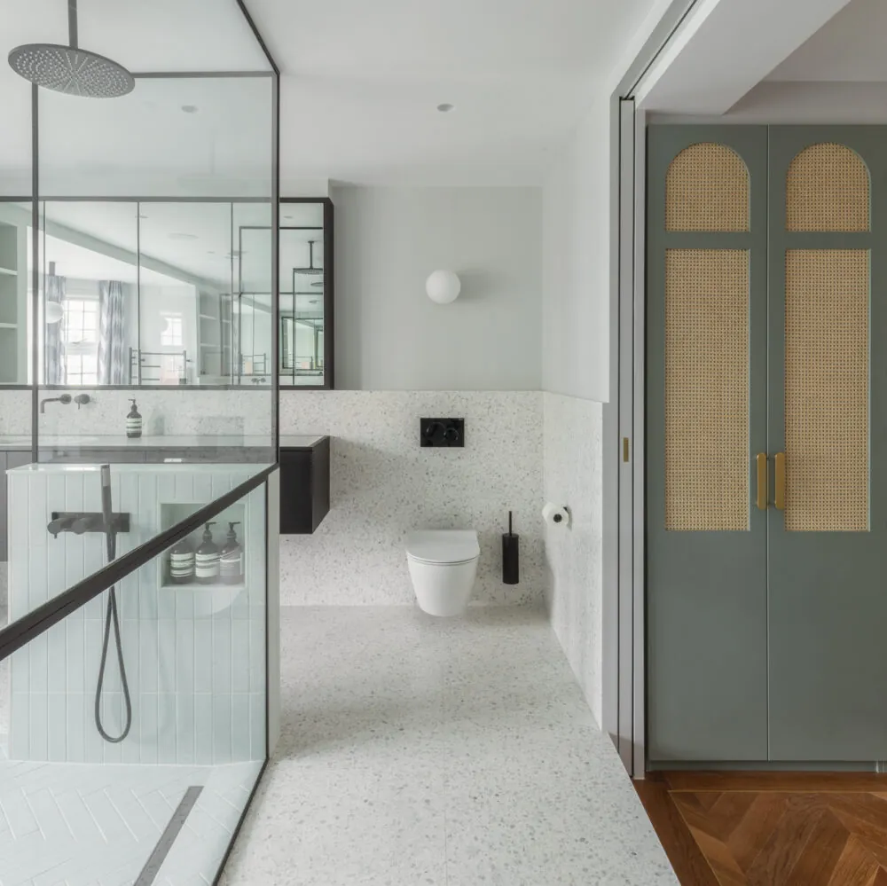 Terrazzo was a popular material for flooring in the 1930s Art Deco period so fitted the brief perfectly. Diespeker terrazzo, standard and bespoke, was utilised in the kitchen and master bathroom.