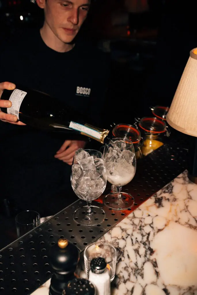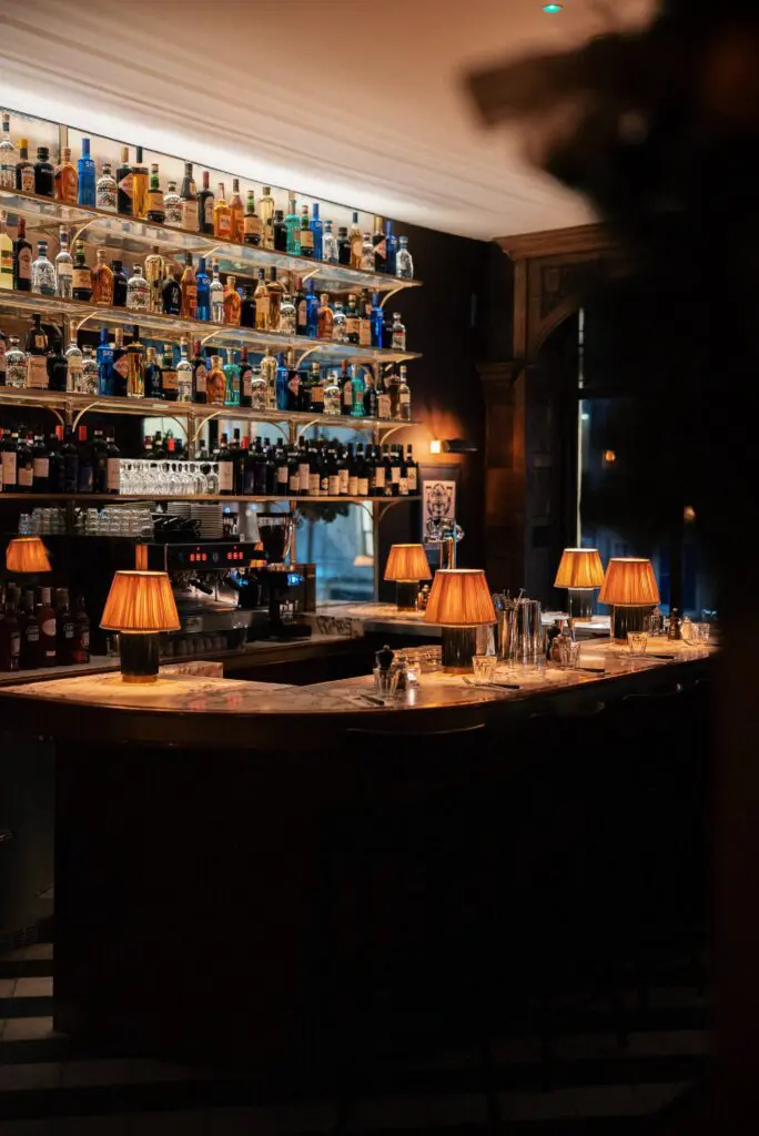 Marble has always been a unifying material across Bosco sites, so its use on bars, kitchen counters and selected furniture was a given. For this city-centre location, Miles wanted a slightly more elevated expression of the brand, which led to the decision to upgrade key customer-facing areas to a more expressive marble than used previously. The marble counters combine with patinated brass and stained oak alongside the clients own styling touches.Â