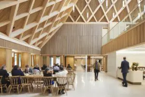 In 2019 a new refectory building was added to the site. This was delivered by architects Maccreanor Lavington who were appointed after winning a competition to design the new wing.