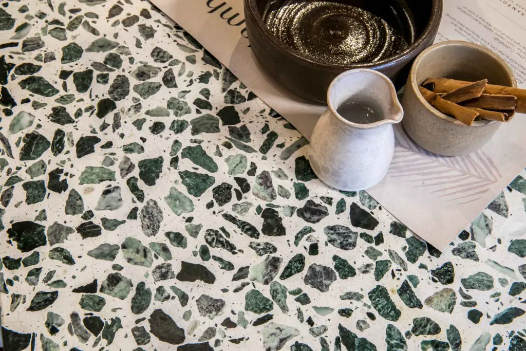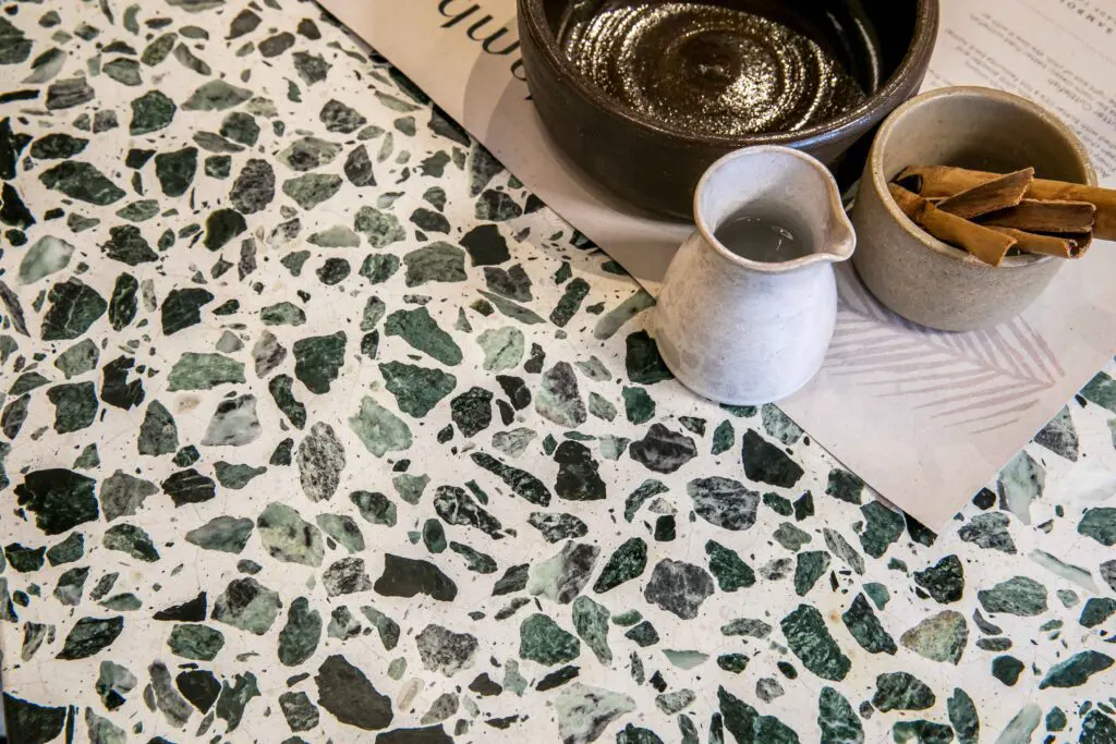 Designer Annie Harrison of Fare Inc has worked with Diespeker on previous projects and had been pleased with what we had produced. However, she hadn’t commissioned Diespeker to produce bespoke terrazzo, so this was a first for her.
