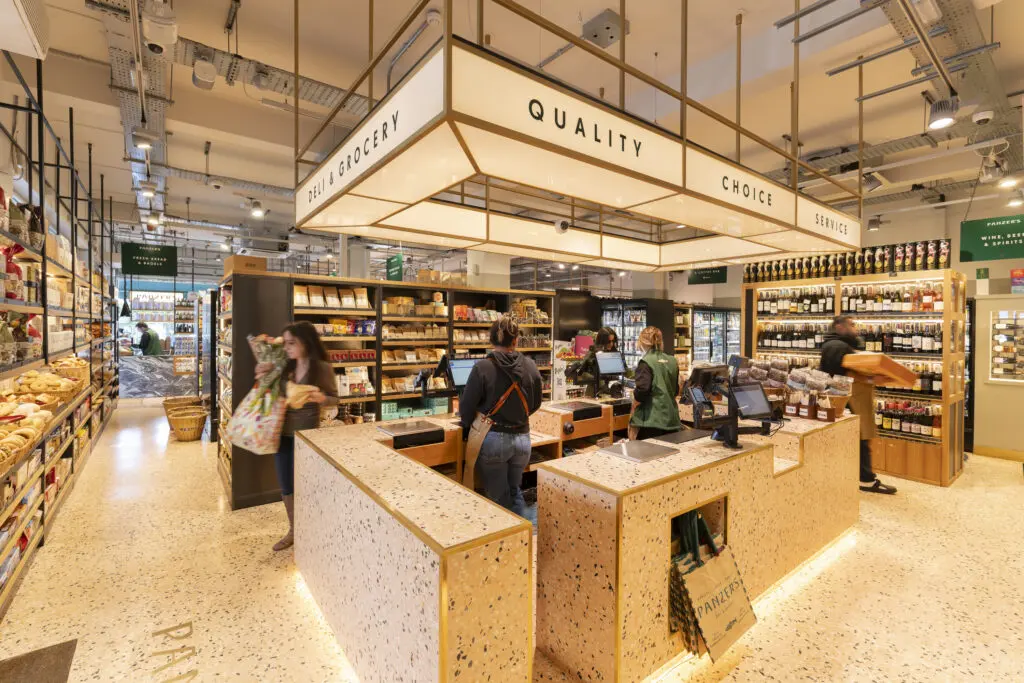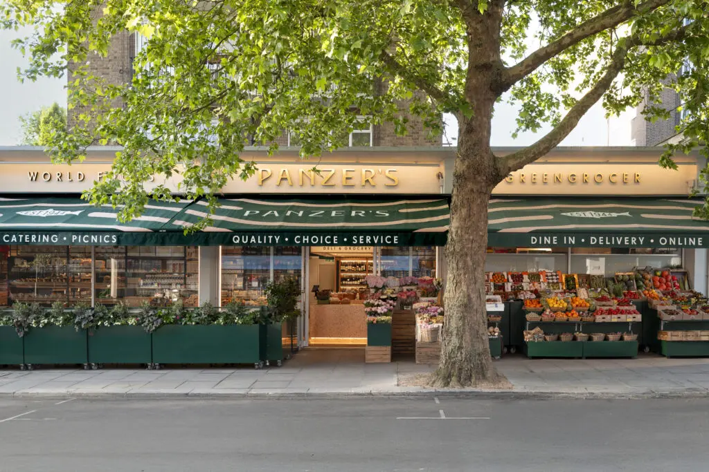 While Panzer’s didn’t completely close during the refurbishment period, it reopened fully in January 2025 to great celebration and fantastic reviews. One article in the Financial Times refers to David’s excitement about his “…new state-of-the-art refrigeration units (“a 40 per cent improvement in efficiency”), Diespeker terrazzo floors or his dream one day to take over the building next door, currently occupied by the only bank branch in the country he fears will never close.” (In Praise of Panzer’s, the poshest grocer’s in London).