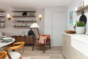 The brief was very detailed, as Claire explains. “The Soho Home team are extremely creative and had a very specific brief for us to work to. They were aiming for a traditional but luxurious look with the cabinetry, with open shelving above the worktop.”
