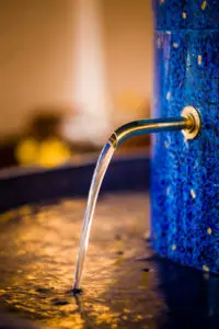 The fountain sections were created using bespoke moulds, and required the insertion of complicated piping, to feed the water into the fountain and allow it to flow steadily down the outside of the structure. After the moulds were set, the terrazzo underwent hand grinding and polishing to create a smooth, high gloss finish.