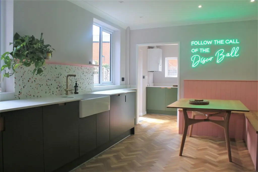 Terrazzo splashback gives contemporary pop to artist’s kitchen