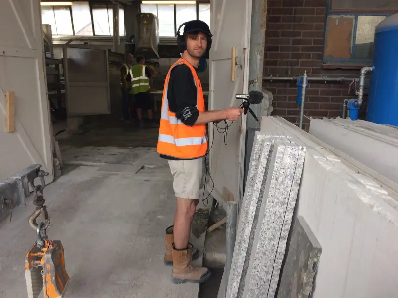 A recent request from artists Oliver Koch and James Wignall, however, was very different. Oliver and James were working on a sound performance piece for the London Festival of Architecture. They told us that the focus of their piece was specialist businesses around the Old Kent Road area where they were collecting field recordings to incorporate into a performance in the Sound Without Boundaries event. They had already been to Small Beer Brewery and were also capturing sounds at Kaymet and Weber Industries.