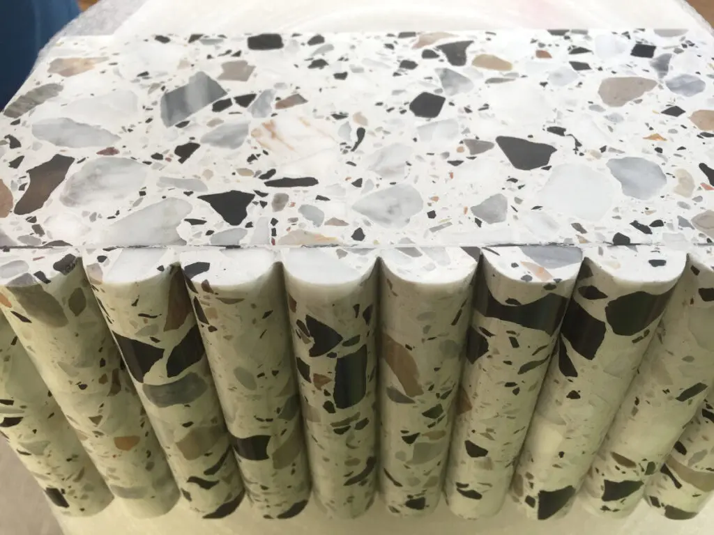 This new style of terrazzo could be used for the front face of a counter, providing a unique and unusual façade for users of the co-working offices.